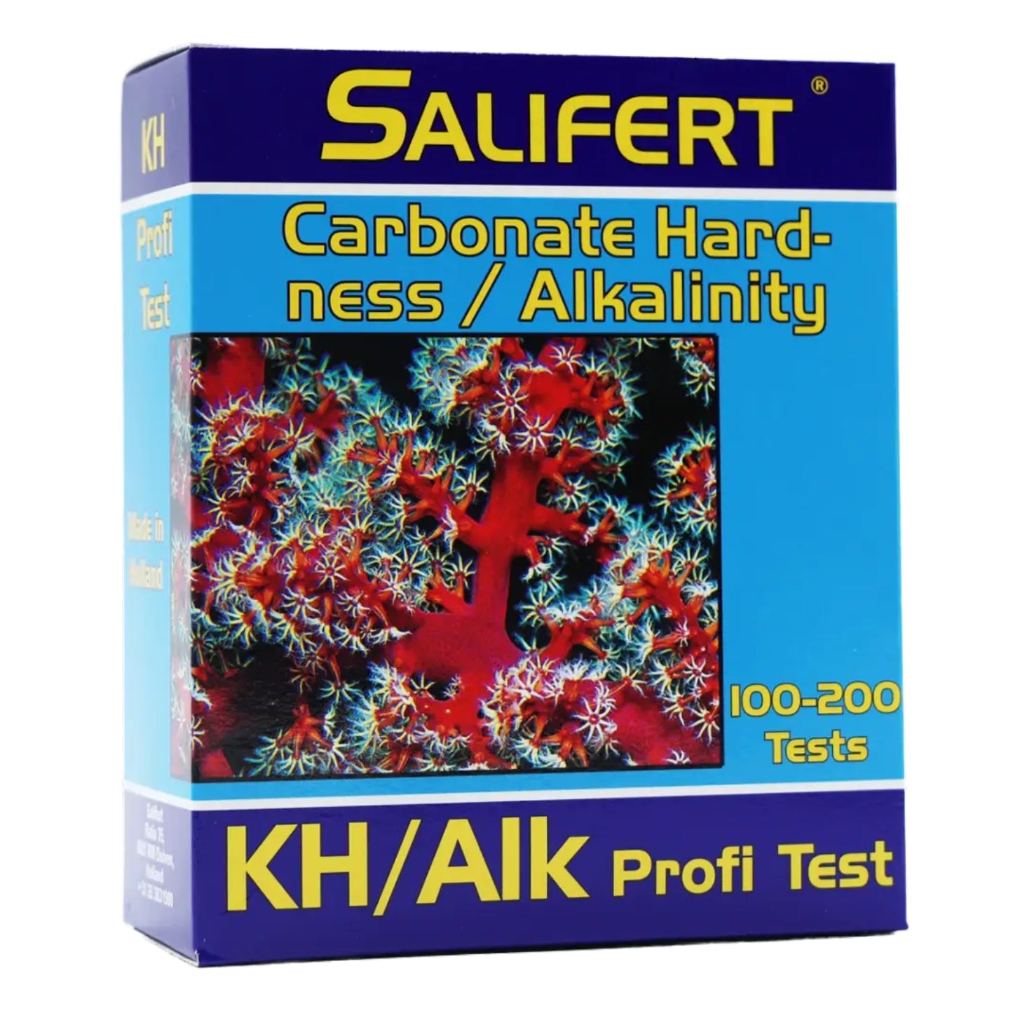 Le test Salifert KH/AIK (KH/Alkalinité)  est un kit très populaire pour aquariums d'eau de mer,  permettant de mesurer la dureté carbonatée et l'alcalinité, essentiel pour la stabilité du pH et la croissance des coraux, avec 100 à 200 tests par kit.